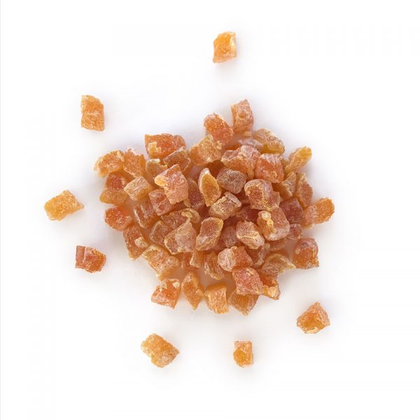 Kuru Kayısıların kesme makinesinde küp şeklinde kesilmesi ile elde edilir.